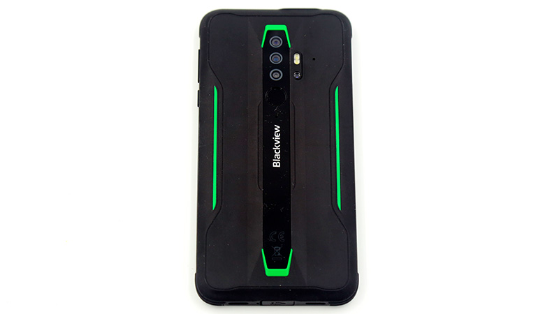 Задняя часть смартфона имеет глянцевую вертикальную линейку с надписью Blackview, в которую встроены камеры и сканер отпечатка пальца, также здесь сделана эффектная цветовая отделка.