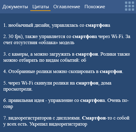 Предположим, нужно исключить все документы с видеорегистратором AdvoCam - задаем запрос: "видеорегистратор -AdvoCam", получаем результат.