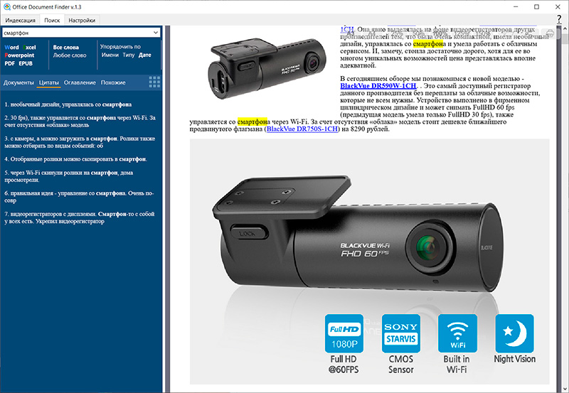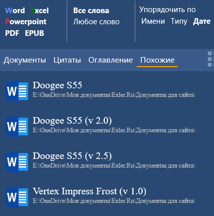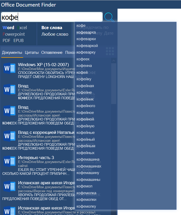 А теперь давайте смотреть, какие возможности предоставляет Office Document Finder.