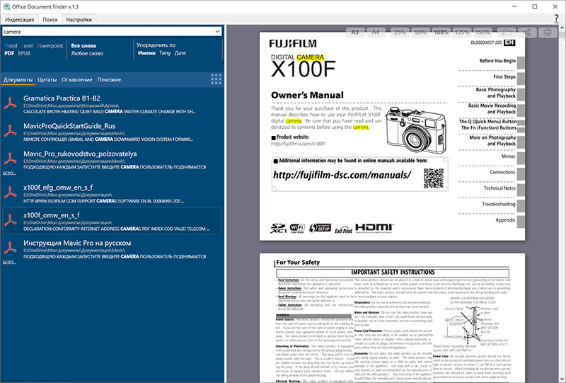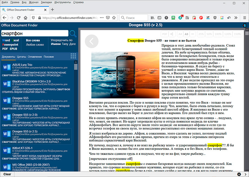 С документами PDF Office Document Finder работает так же, как и с другими видами документов, и это очень удобно.