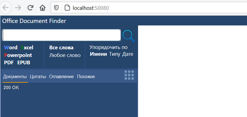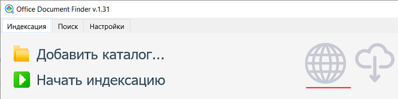 В браузере не добавляются каталоги и не показывается процесс индексации, но оттуда можно осуществлять поиск по документам практически так же, как и в приложении.