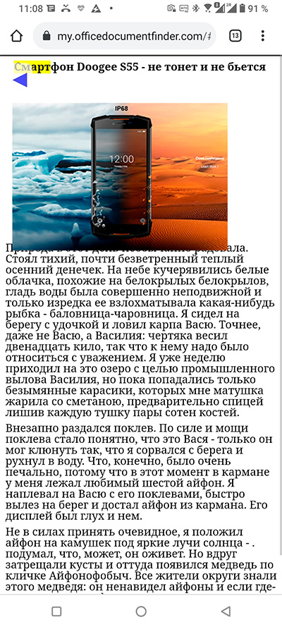 А вот так это выглядит в смартфоне при переходе по ссылке в QR-коде: список документов с найденной поисковой строкой, просмотр конкретного документа.
