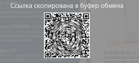 При нажатии на эту пиктограмму система сгенерирует QR-код, который автоматически скопируется в буфер обмена, откуда его можно будет вставить в письмо или сообщение.