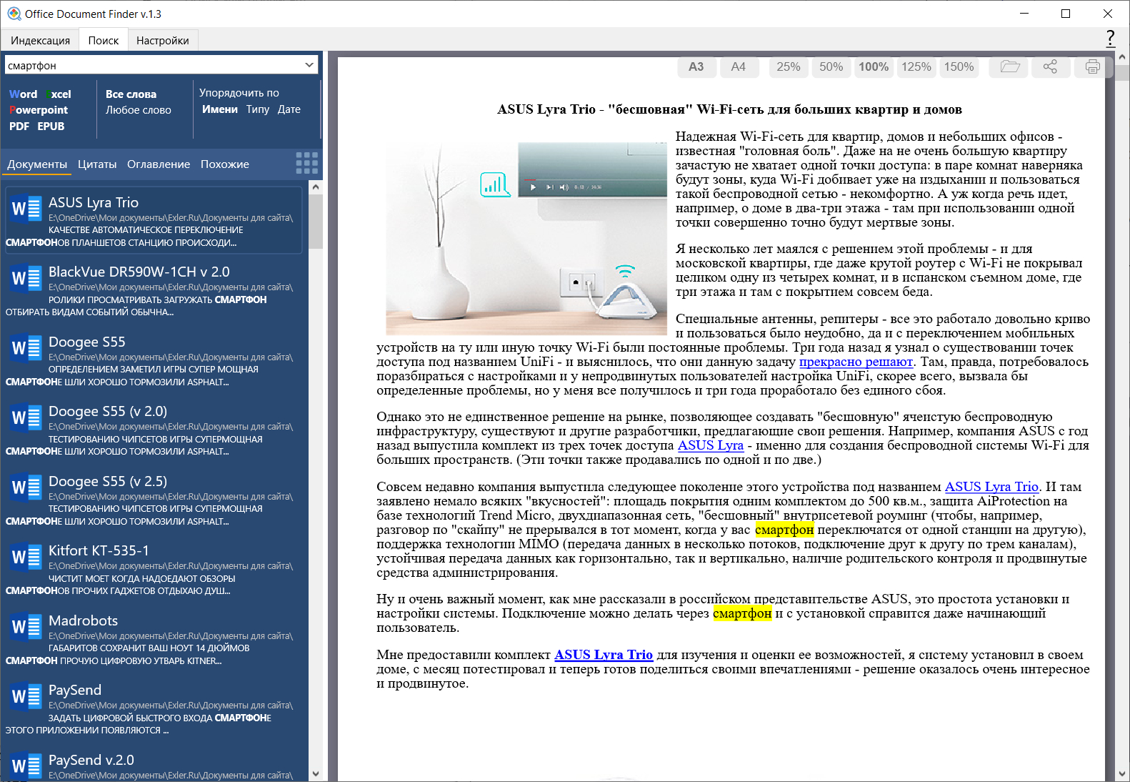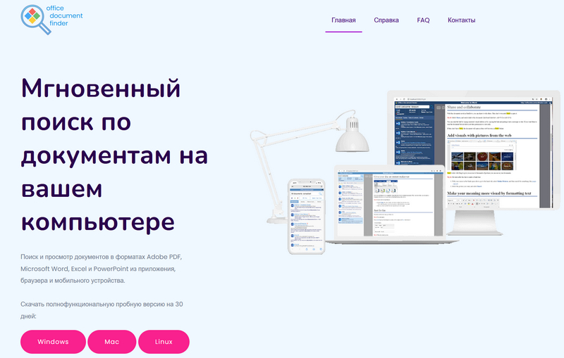 Некоторое время назад разработчики Office Document Finder предложили мне познакомиться с их продуктом. Эта система работает под Windows, Mac и Linux, поддерживает облачный доступ, работу на мобильных устройствах и через браузер.