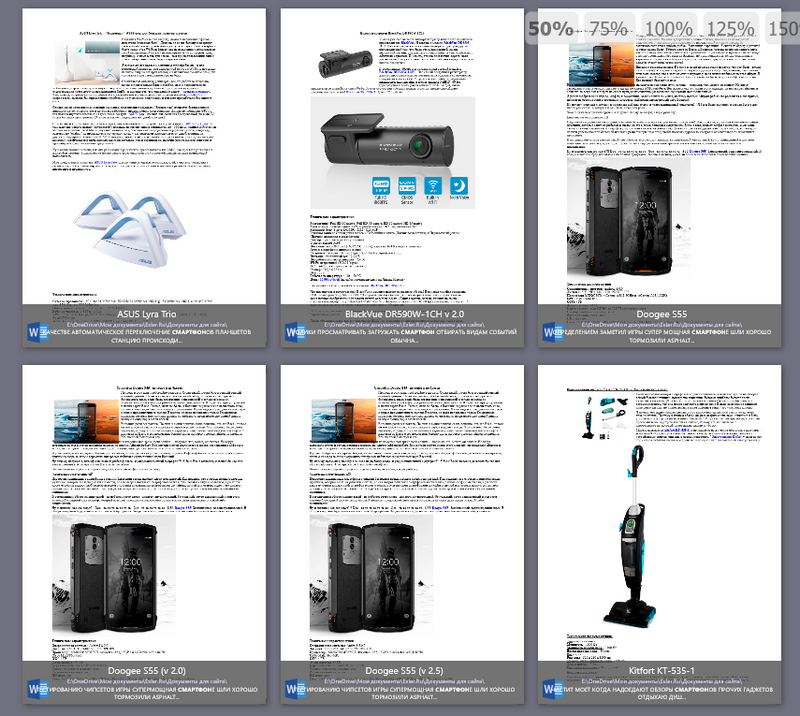 Если переключиться в режим просмотра миниатюр, то это будет выглядеть как-то так (масштаб вы также можете менять).