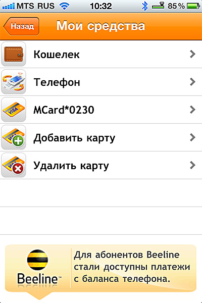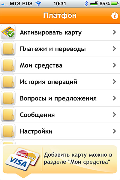 Но это только на iPhone, на Android при вызове приложения из списка задач mPIN не запрашивался. Однако он в любом случае будет запрашиваться при каждой денежной операции, так что не страшно.