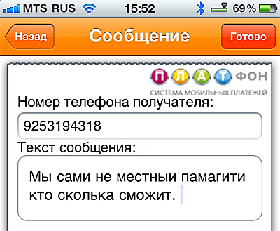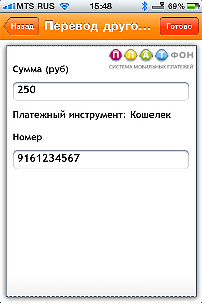 Также вы можете перевести деньги другому клиентку ПЛАТфона - для этого нужно только знать его телефон.