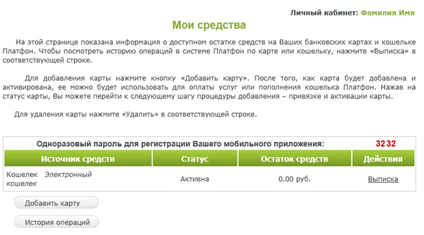 Еще доступны варианты пополнения вашего кошелька ПЛАТфона с вашей карты, а также вывод средств с вашего кошелька ПЛАТфона на вашу карту.