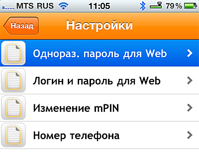 В настройках - одноразовый пароль для веб-интерфейса (чтобы совершить перевод на сайте системы), реквизиты для доступа в веб-интерфейс, возможность изменения mPIN (вообще его рекомендуется периодически менять - для безопасности) и изменение номера телефона (если вы смените SIM-карту).