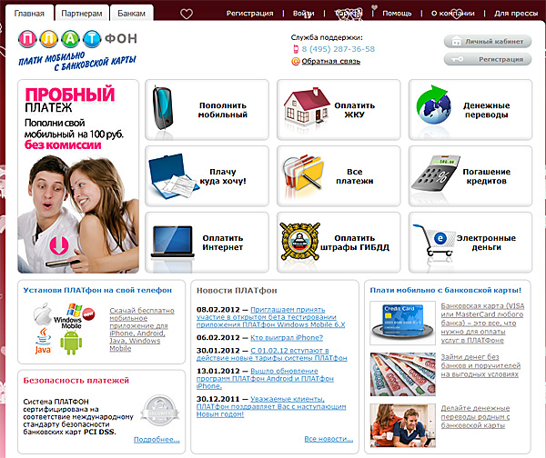 Я этот сервис обнаружил, когда в очередной раз болтался в разъездах за границей, и мне вдруг срочно потребовалось оплатить различные российско-домашние жилищно-коммунальные, чтобы милый дом не встретил отключенным светом, молчащим телефоном и пересохшими трубами. Причем я еще был и без компьютера - только с коммуникатором. Порылся в Интернете (на коммуникаторе это не такая простая задача) - обнаружил сервис ПЛАТфон, который обещал, что я все это смогу сделать легко и быстро, причем различными способами.   >
