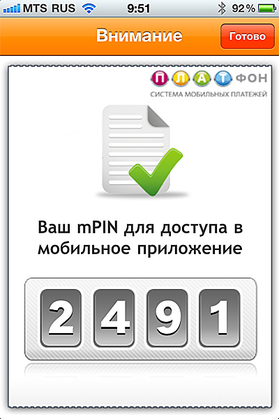 После успешной регистрации система выдаст вам так называемый mPIN, который обязательно нужно записать или запомнить - без него вы не сможете пользоваться приложением. Он нужен и для доступа в приложение, и для подтверждения почти всех операций. Потом его можно будет поменять в профиле на тот, к которому вы привыкли.