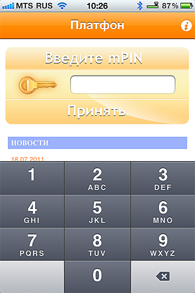 Теперь при запуске приложения у вас будет запрашиваться mPIN, после чего станут доступны все возможности системы.