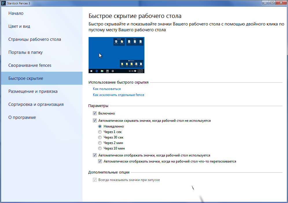 Правда скрывает иконки не при бездействии, а просто по таймеру.