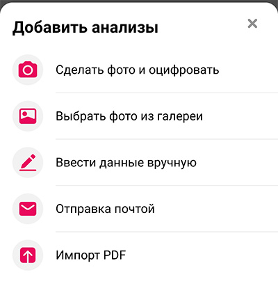 Можно сфотографировать бумажные результаты, загрузить фото, отправить в виде письма, импортировать PDF.