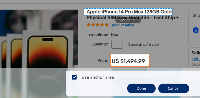 Якорная область и область интересов - эти области помогают конкретизировать задачу и сделать так, чтобы сервис реагировал только на изменения на странице, которые представляют для вас интерес.