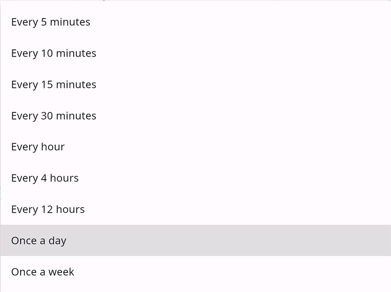 Далее выбираем частоту отслеживания - от раза в неделю до каждые пять минут.
