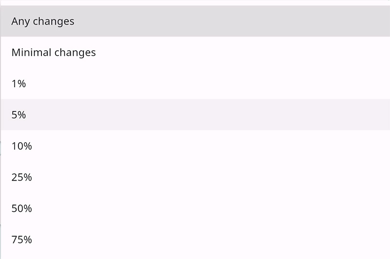 Также можете задать процент изменений, при котором отправлять уведомления, и тут рекомендуется ставить не менее 10%, чтобы мониторинг не срабатывал на совсем мелкие изменения - например, на изменение счетчика просмотров.