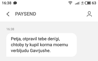 Причем можно не бояться, что у получателя кириллица превратится в какое-нибудь непотребство: сервис сам перегонит сообщение в транслит. Вот пришедшее сообщение: