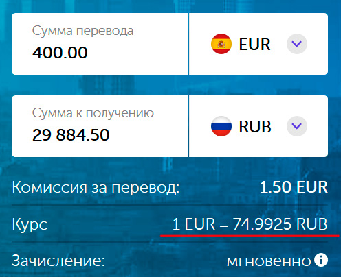 Обратите внимание на то, что здесь сразу четко указывается сумма к получению, размер комиссии и курс конвертации (если он есть).