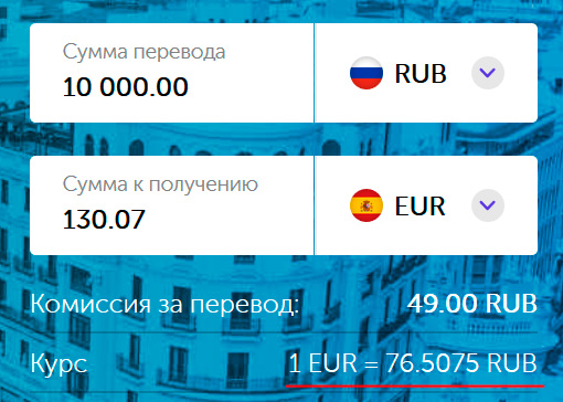 Плата за перевод из России за границу всегда фиксированная — 49 рублей. Неважно, в какую страну и какую сумму вы отправляете (в пределах разрешенных лимитов и географии сервиса, разумеется), комиссия составит 49 рублей. При отправке из еврозоны плата за перевод — всегда 1,5 евро (если списание происходит в евро), из США — всегда 2 доллара.