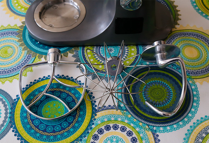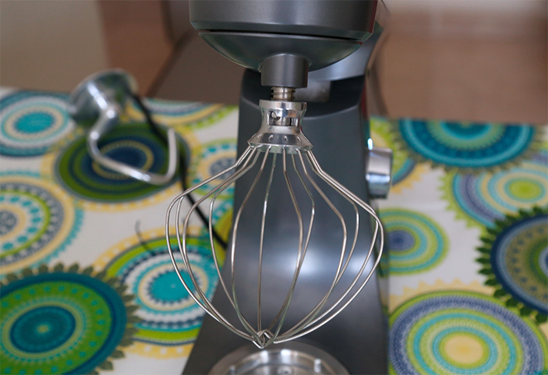 Но вернемся к комплектации. Насадки следующие: венчик для взбивания, насадка для смешивания, крюк для замеса очень плотного теста.