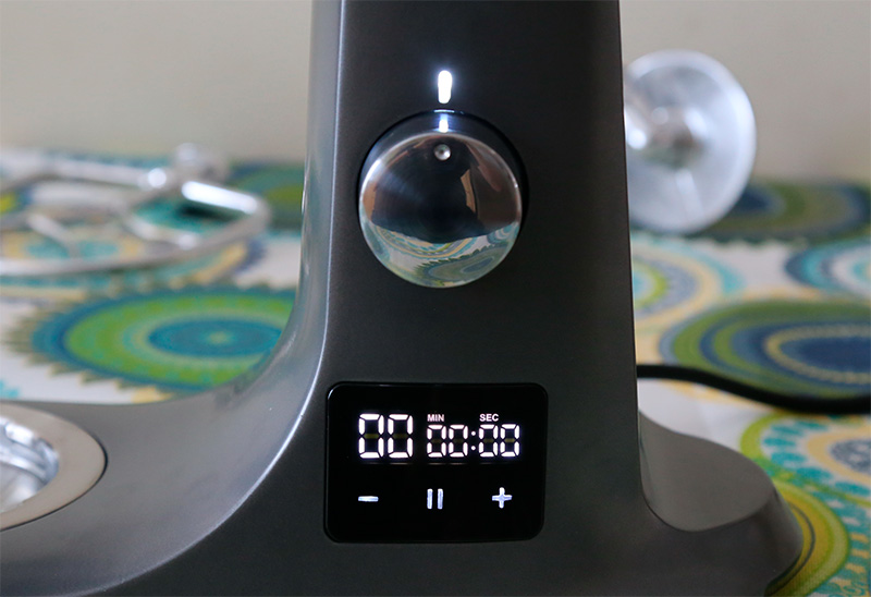 Справа на корпусе расположен регулятор скоростей, под ним дисплей, на котором можно выставить нужное число минут и секунд.