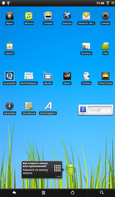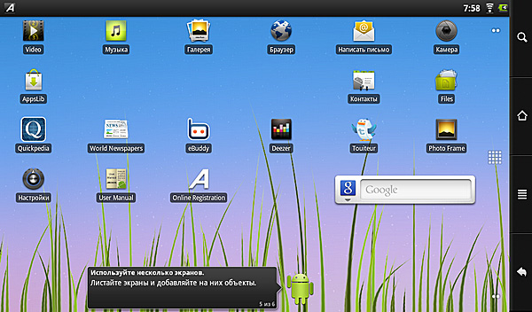 Дисплей загруженного планшета выглядит следующим образом.