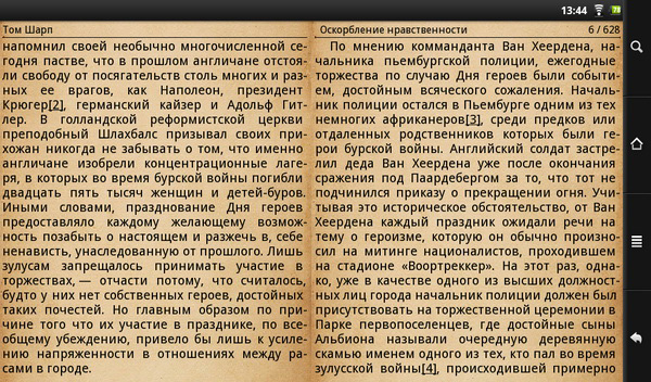 На нем читать удобно, много настроек, есть двухколоночный режим.
