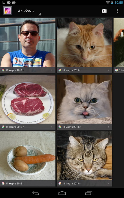 Альбомы-галереи. Изображения можно отбирать по местам, датам, людям и тегам.
