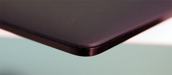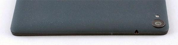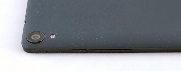 На заднюю поверхность нанесено покрытие Soft Touch - я думал, что так уже не делают. Нет, делают. С таким покрытием планшет ухватисто лежит в руке, но этот Soft Touch почти мгновенно заляпывается пальцами, причем это уже не оттереть, и легко царапается, так что через очень непродолжительное время планшет радостно и навсегда полностью утратит товарный вид. У Nexus 7 с этим делом было заметно лучше.