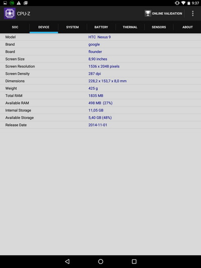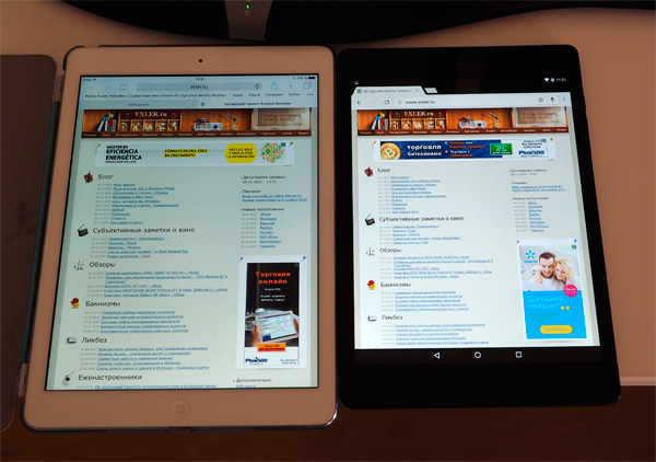 Я был слегка в шоке. Уж и не знаю, что за планшет достался Муртазину, но у моего дисплей - отличный. Более того, сравнил его именно с айпэдом 3-го поколения (ребенок у меня в него играет) - я не просто не вижу разницы, но и вообще экран Nexus 9 кажется мне более ярким и более насыщенным.