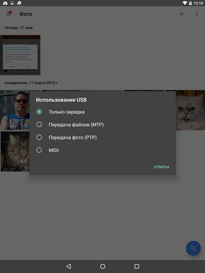 При подключении планшета по USB по умолчанию почему-то включается режим "Только зарядка", и это никак нельзя изменить.