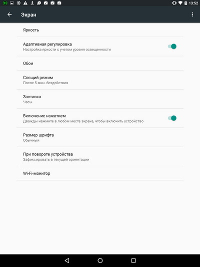 В настройках дисплея на уровне системы добавилась возможность включать устройство постукиванием по экрану (первыми это придумали, насколько я помню, в LG, а потом другие производители стали копировать). Для данного планшета с его совершенно дикой кнопкой включения это более чем актуально.