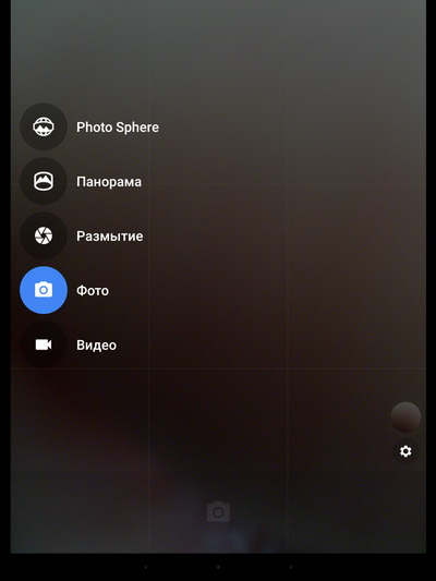 Свайп вправо - появляются режимы съемки и дополнительные настройки.