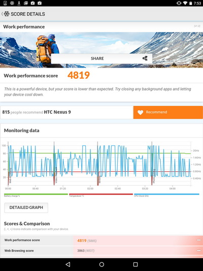 По тестам все отлично, чисто практически планшет также работает очень шустро, однако иногда при работе, например, с настройками вдруг возникали странные тормоза. Но я это связываю с недостаточной "допиленностью" новой системы.