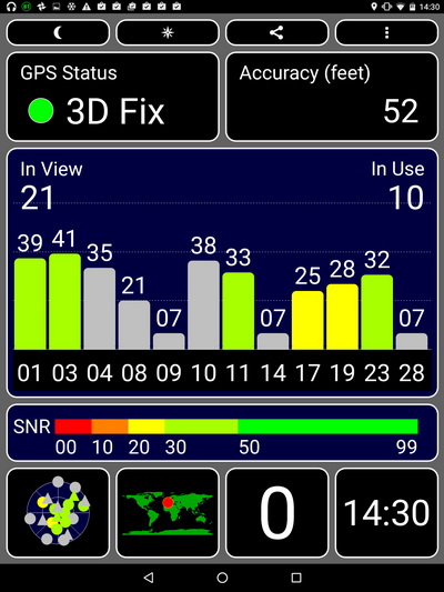 Холодный старт был более или менее продолжительный, но когда набралась информация A-GPS, планшет координаты определял уже шустро. Видел 16-20 спутников, в процессе поездки координаты держал хорошо, с дороги не слетал.