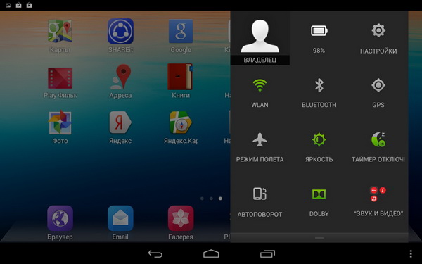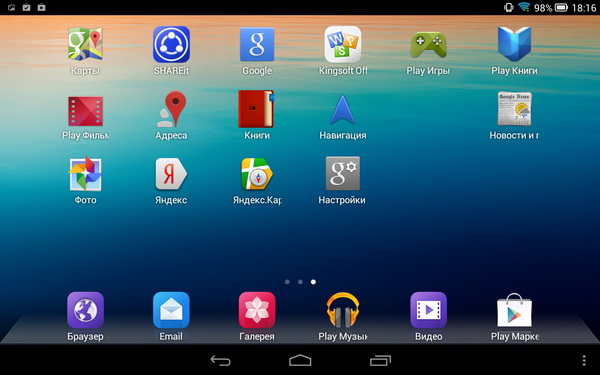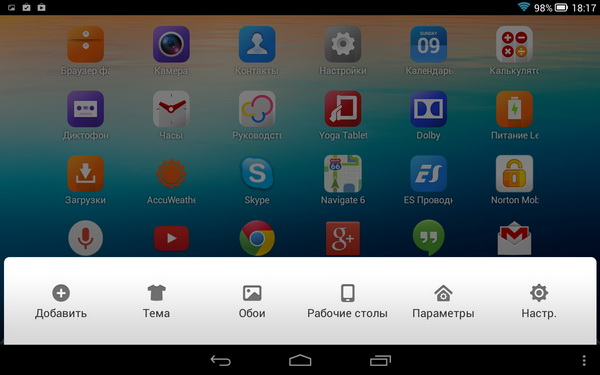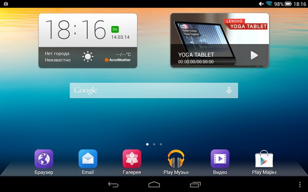 Для планшета, что интересно, в Lenovo убрали отдельное окно с приложениями, а все приложения разместили на десктопах, благо их немного. (У смартфонов я такое невстречал.)