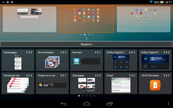 Добавление виджетов (приложения добавлять нет смысла, они и так все на десктопах).