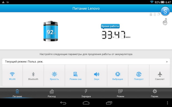 Специальное приложение, оптимизирующее энергопотребление планшета.