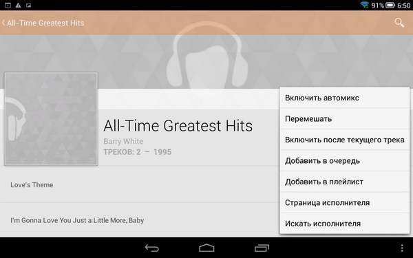 "Play Музыка". Отбор аудиотреков по жанрам, исполнителям, альбомам, трекам.