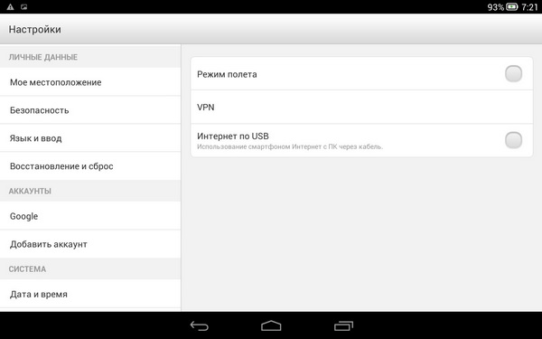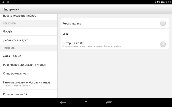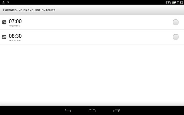 Как обычно, есть возможность включения-выключения устройства по расписанию. Для смартфона это очень полезно, а для планшета не слишком нужно.