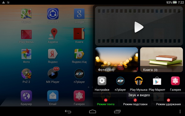 Пожалуй, из андроидных планшетов мне этот на данный момент понравился больше всех. К сожалению, я не могу на него полностью перейти с iPad mini из-за отсутствия под Android аналога программы "Киоск", с помощью которой я покупаю всякие журналы, но "Киоск" мне нужен дома, а всякие видео, книги и так далее - в поездках.