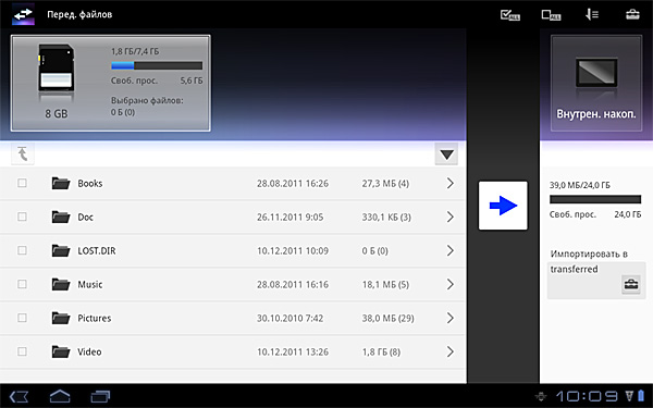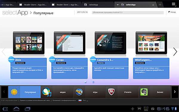 Далее, чтобы не нарушать моего общего подхода к изучению планшетов, давайте сначала посмотрим, как тут реализовано решение стандартных пользовательских задач, а потом уже познакомимся со специфическими приложениями от Sony.