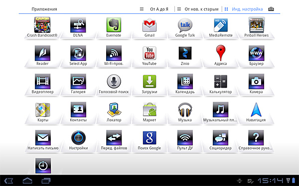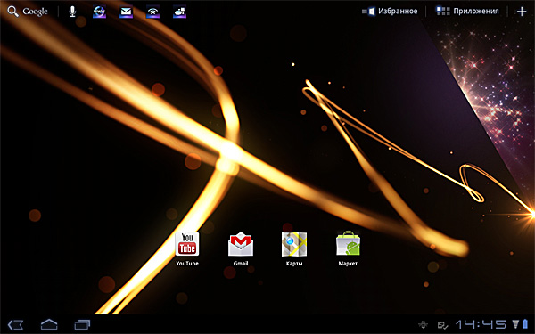 О новой, чисто планшетной версии Android 3.0, я уже подробно писал, так что не буду повторяться, описывая принципы построения интерфейса и так далее. Поговорим об особенностях и специфических приложениях именно данной модели планшета, на котором установлена система Android 3.2.1.