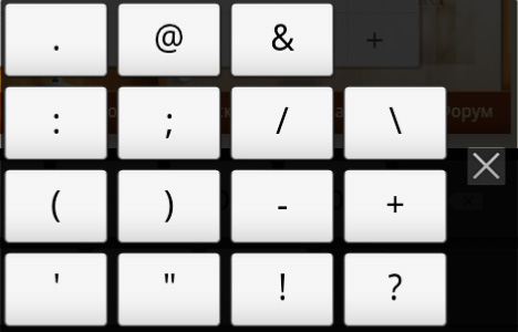 Везде, где есть серая стрелка, по длинному нажатию вызывается окошко с дополнительными символами.
