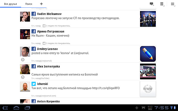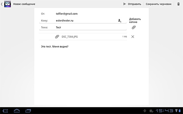 Приложение Email – тоже стандартное для Honeycomb. Незнаю, чем уж руководствовались в Google, делая два приложения под одну задачу, но Email фактически включает в себя весь функционал приложения Gmail кроме поиска (который все равно работает только при подключении к сети) плюс работу с IMAP, POP3 и Exchange (при этом к Exchange подключается чуть ли не лучше, чем Outlook – по крайней мере, это единственный клиент, который подключился к нашему рабочему серверу).