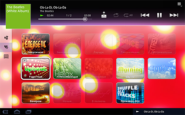 Тут собственный плеер - удобный и продвинутый, причем интерфейс отлично продуман. Сам плеер находится сверху со всеми возможностями - любая временная точка, случайное воспроизведение, зацикливание, управление - слева - отбор по абложкам альбомов, избранное, библиотека, функция SenseMe.