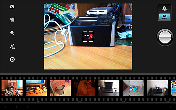 Есть автофокус, поэтому съемка любого кадра занимает не менее двух секунд - что-то быстро снять не получится. Впрочем, планшет для этого толком и не предназначен.