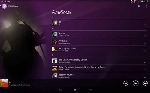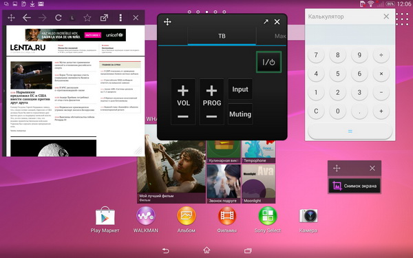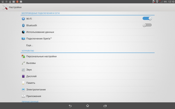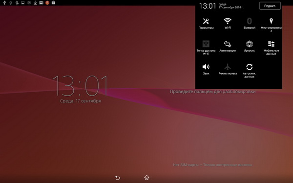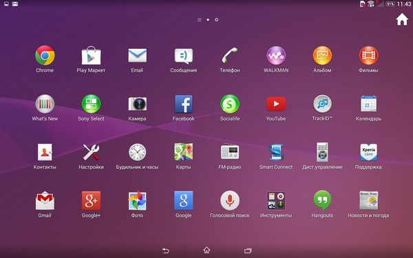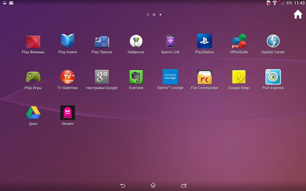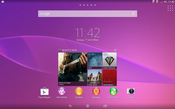 Здесь установлена самая новая, на данный момент, версия Android - 4,4,2. Однако у планшета, как обычно, собственная оболочка и системные приложения от Sony.
