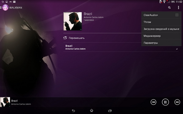 Меню воспроизведения. ClearAudio+ работает и для динамиков, и для наушников, звук действительно улучшает.